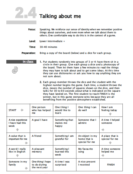 I recently went on a tour of Germany where I gave talks sponsored by Helbling Languages Academy. One of the talks I gave was called – Self-Esteem and Confidence in the EFL Class. Robert Reasoner, the founder and former President of the International Council for Self-Esteem established five components of self-esteem that can be dealt with in the classroom. These are: Security – Identity – Belonging – Purpose – and – Competence.
