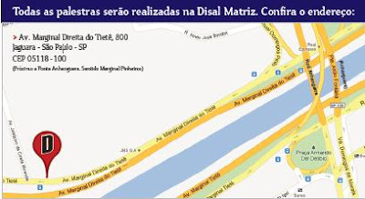 Os eventos acontecerão no novo prédio da Disal na Marginal Tietê. Veja o endereço no mapa abaixo.