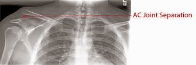 A separated shoulder (also known as acromioclavicular separation, AC joint separation, AC separation), is a common injury to the acromioclavicular joint. This is not to be confused with shoulder dislocation which occurs when the humerus separates from the scapula at the glenohumeral joint. (https://en.wikipedia.org/wiki/Separated_shoulder )