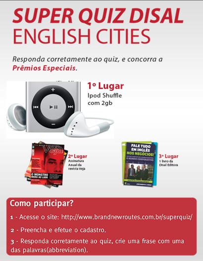 Responda corretamente ao quiz, crie uma frase com uma das três palavras e concorra a Prêmios Especiais, você tem a chance de ganhar um IPOD SHUFFLE, participe: