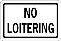 Placa normalmente vista em banheiros públicos. O verbo to loiter/loitered/loitered significa “ficar parado em atitude suspeita”; “vadiar”.