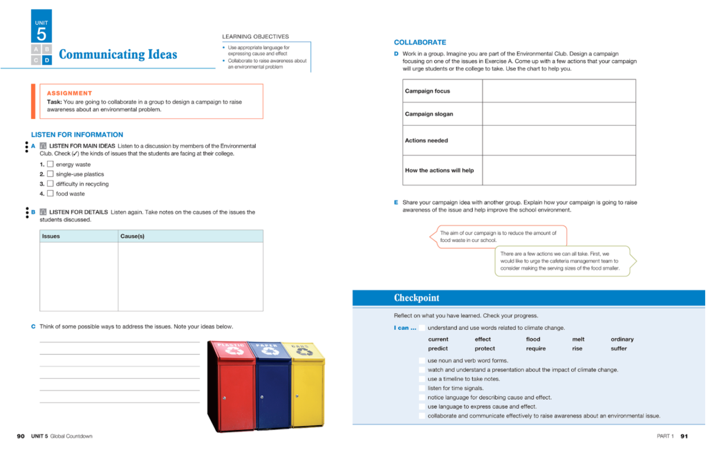 Projects are a great way to integrate several future-ready skills. For example, National Geographic Learning’s 21st Century Communication, Second Edition and Life, Third Edition programs both feature project-based lessons that engage students in collaborating, evaluating ideas critically, thinking creatively, and communicating their ideas effectively. - Teach strategies for developing future-ready skills